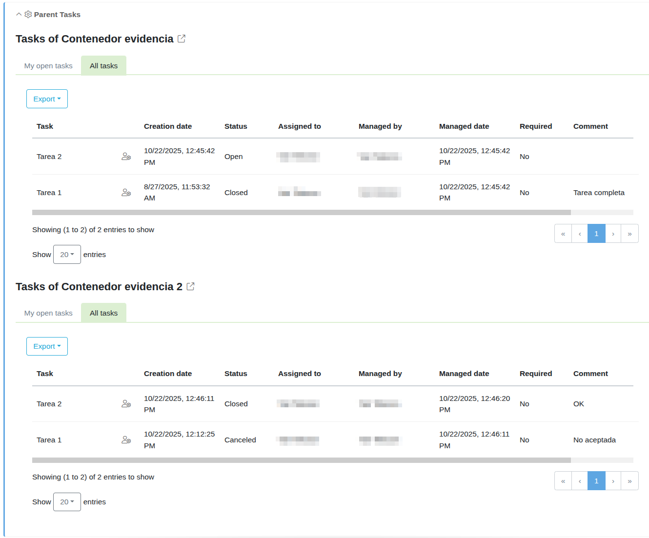 Además de gestionar las tareas abiertas, se pueden visualizar todas las tareas de dichos documentos: