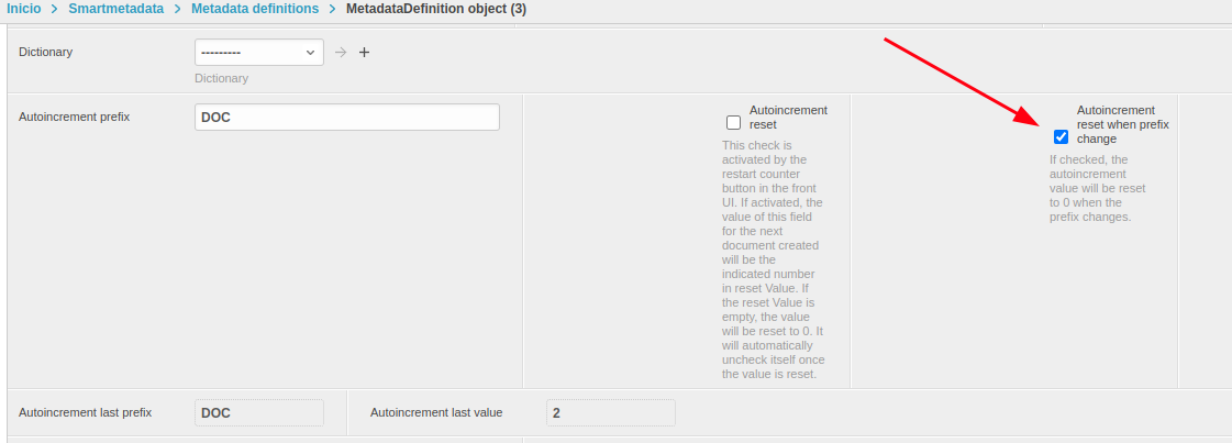 Además, en caso de desearlo, puedes quitar el año del prefijo del campo, desmarcando la casilla "Autoincrement year in prefix" desde la administración avanzada. Ver como hacerlo en el siguiente artículo: ¿Cómo eliminar el año en un campo autoincremental?