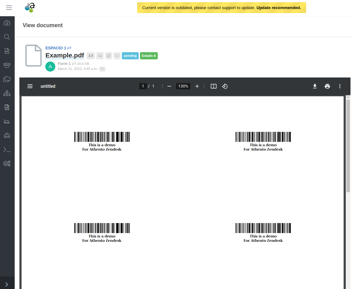 Athento permite la generación de etiquetas con códigos de barras. Estos códigos se pueden imprimir y pegar sobre la documentación física a modo de sticker o pegatinas, de modo que se pueda vincular un documento (objeto u paquete físico) con su registro digital.