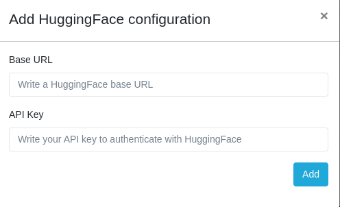 Athento te pedirá la URL de llamada a HuggingFace, así como también la clave de integración, necesaria para realizar la autenticación.
